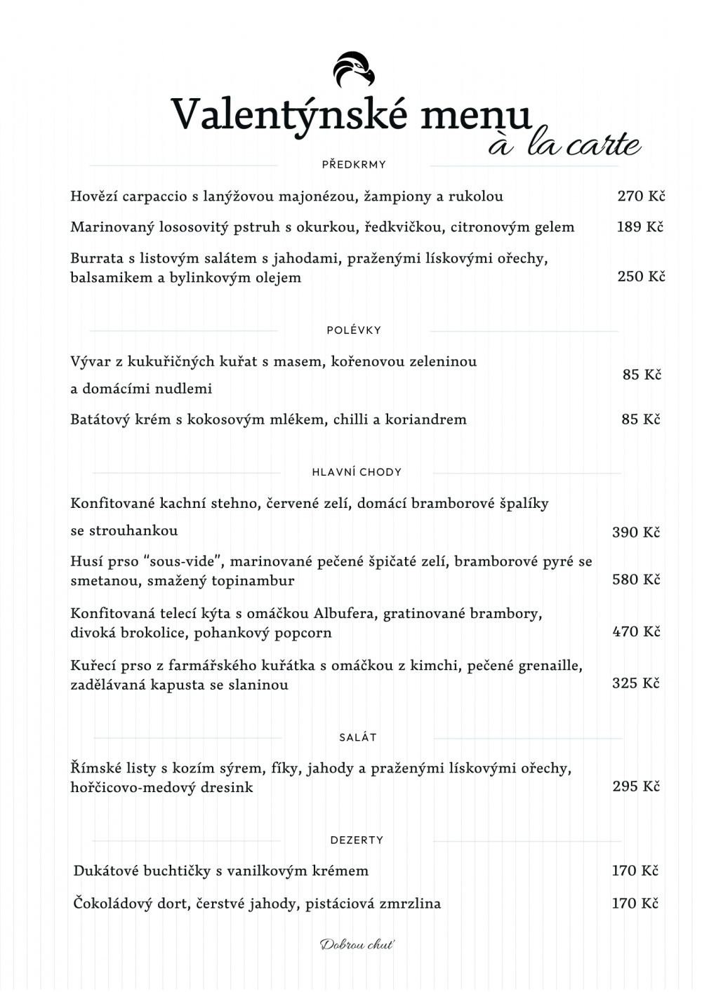 - valentýnské menu naleznete v příloze