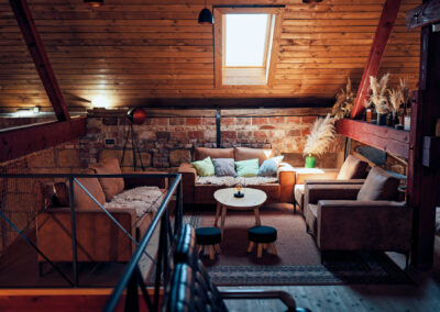 Stodola je srdcem všech větších oslav a neformálních setkání. Červené trámy, původní zdivo, otevřený prostor a světlo, které mění atmosféru během dne i noci. Vlastní bar, grily, sociální zázemí a skvělá akustika – to vše vytváří ideální zázemí pro firemní večírky, svatby, rauty i teambuildingy.